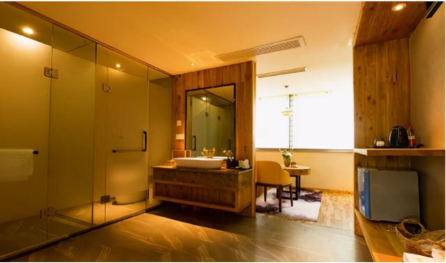 房間的露臺(tái)有玻璃棧道的感覺,正對(duì)著外面的大山和流水的落地玻璃窗,滿眼的綠色和大山。老板很有創(chuàng)意,利用集裝箱和徽文化的完美結(jié)合,打造了這家集裝箱民宿,住進(jìn)去完全感受不到是住在集裝箱里。當(dāng)徽式禪意遇上了輕奢工業(yè)風(fēng),集裝箱的巧妙介入,使得整體的觀賞性和功能性達(dá)到了一個(gè)絕佳平衡,住這樣的居所,才叫銷魂。