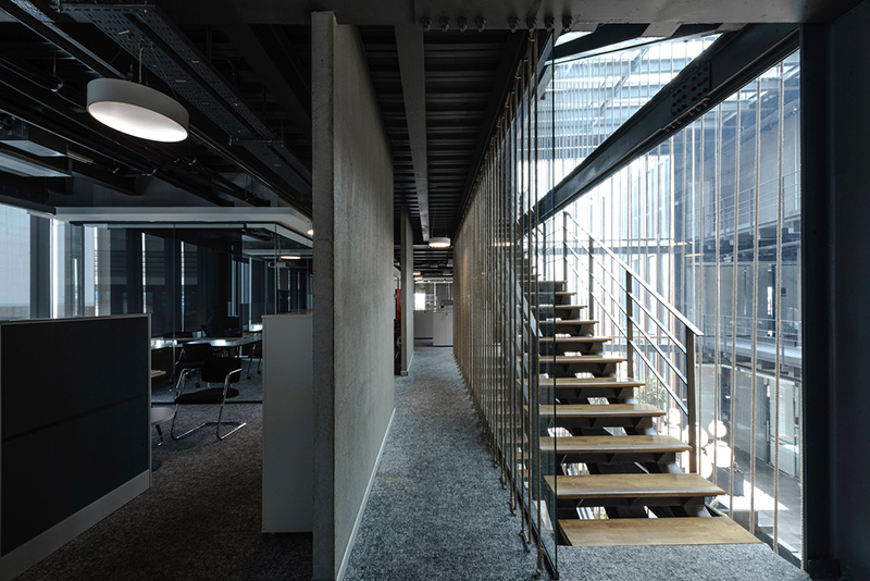 此外,辦公樓也十分鐘情于那股裸露的工業(yè)新風,把不加修飾的管道、天花、支柱都展現(xiàn)出來,讓你體驗那最原始的情懷。