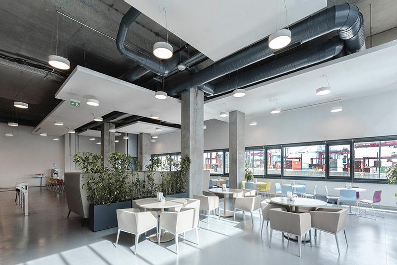 很多時候,最厲害的創(chuàng)作往往都是就地取材,畢竟源于生活才最能打動人心。于是,碼頭的港口服務和物流業(yè)貿易公司又怎么能錯過這個天時地利人和的建筑優(yōu)勢?集裝箱房屋制造商便抓住了這個在建筑界“成名”的機會,在碼頭原始集裝箱堆旁締造了一座讓人驚艷的辦公樓。