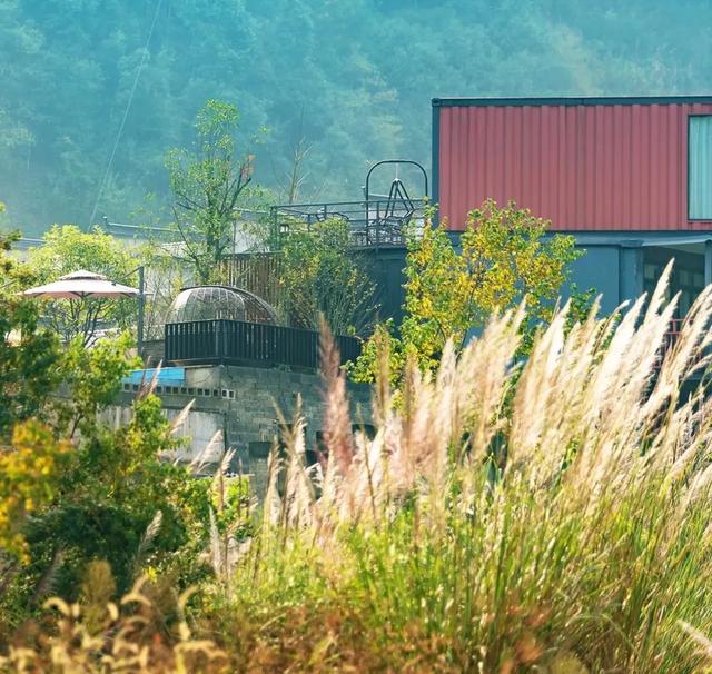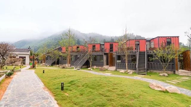 民宿整體占地8000㎡,46個定制集裝箱交替錯落地坐落在山水田園間,背面是大片茶山,前靠潺潺溪流,將現(xiàn)代化集裝箱與徽州文化融合,同時結(jié)合當(dāng)?shù)仫L(fēng)土人情,使得廂居在這徽州的大山深處有著超現(xiàn)代的古典韻調(diào)。