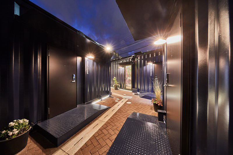 還記得每當(dāng)約了三五知己一起出去旅游的時(shí)候,總會(huì)因?yàn)榫频曜》康娜藬?shù)問題而卡住。如果能湊雙數(shù)開雙人房是好,但是一旦出現(xiàn)單數(shù)就很尷尬了,而且分開住既不經(jīng)濟(jì)也不能享受通宵聊天的樂趣,如果有一種四、五人的多人房就好了。TORACO就是這么一家主打多人房的酒店,主要包括從二到五人的房型。位于日本大阪市的一個(gè)街邊轉(zhuǎn)角處,街頭的位置給酒店帶來了絕佳的人流量。同時(shí),全集裝箱改造的亮點(diǎn)也帶了不少的關(guān)注度。