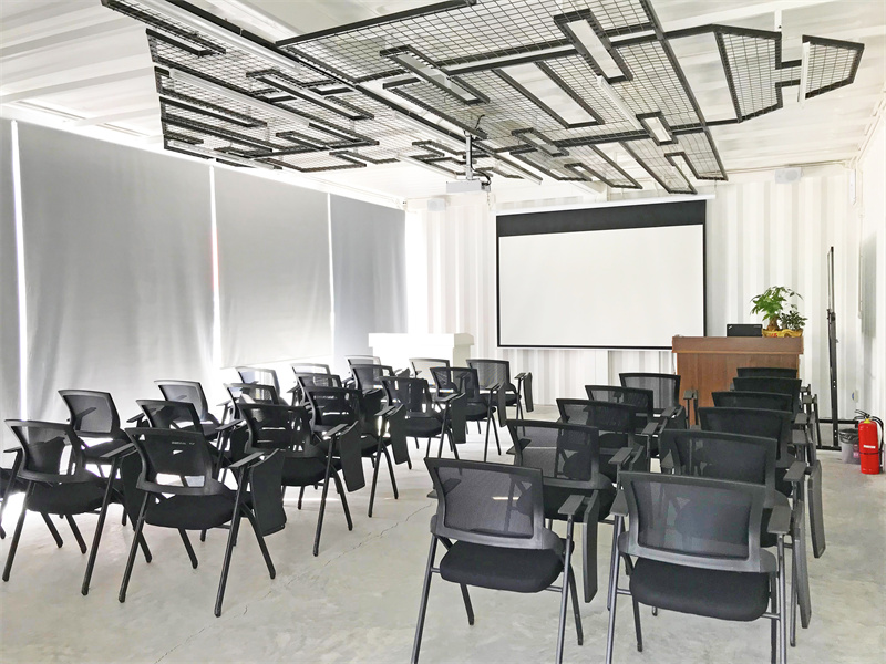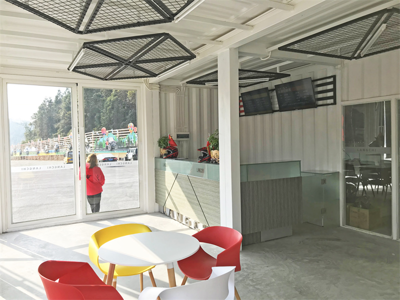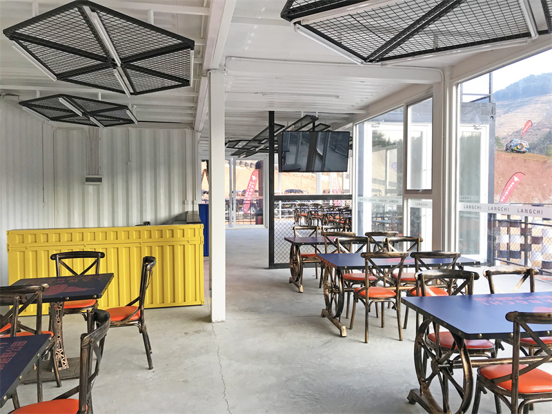 室內(nèi)摒除了內(nèi)墻板和保溫的材料,采用裸裝的風(fēng)格,更能讓集裝箱與環(huán)境相互融合,結(jié)合天花網(wǎng)狀吊燈裝飾,更能體現(xiàn)工業(yè)風(fēng)的美態(tài)。