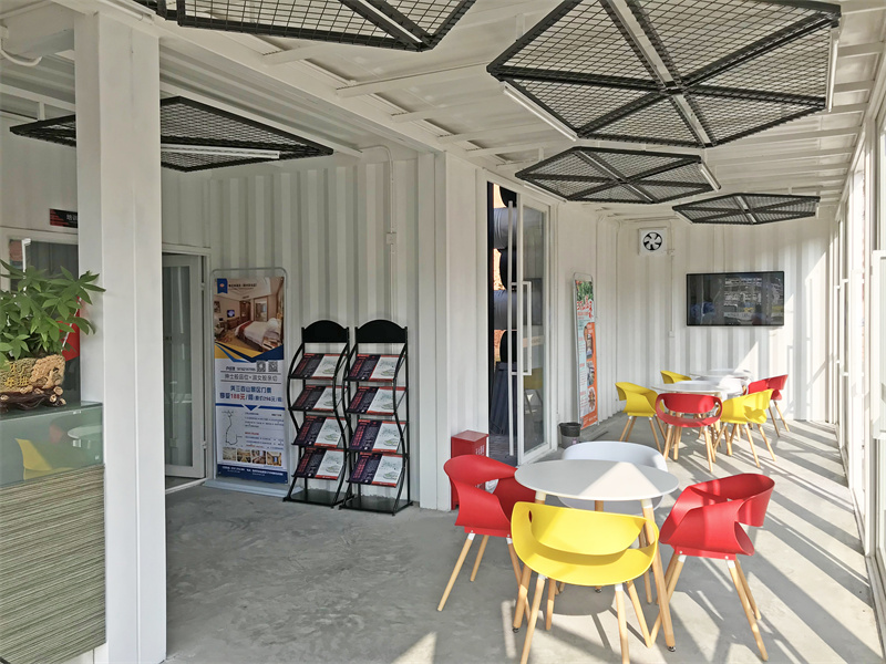 二層設(shè)有集裝箱風(fēng)格配套家具,讓游客休閑之余也能感受到集裝箱風(fēng)格與工業(yè)風(fēng)的魅力。