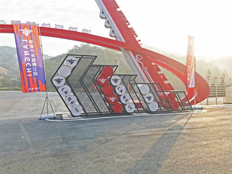 除了有集裝箱制成的接待區(qū)、休息區(qū)和購物中心,園區(qū)內(nèi)還有許多工業(yè)元素的影子。比如小巧的保安亭、油桶拼接而成的雕塑等,點綴著越野場的硬漢工業(yè)風(fēng)。浪跡山林,馳騁人生。