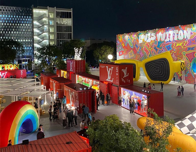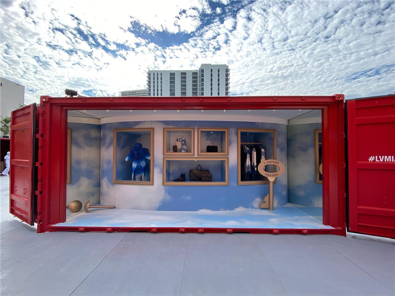 為了展示品牌2021年的春夏男裝,路易威登(Louis Vuitton)在邁阿密搭建了一個宏偉的集裝箱展廳,其中包括維吉爾·阿布洛(Virgil Abloh)的設計。該品牌的創(chuàng)造性方法一直以來都備受稱贊,選用集裝箱建造服飾展柜將能使容器的工作得到真正的突破。
