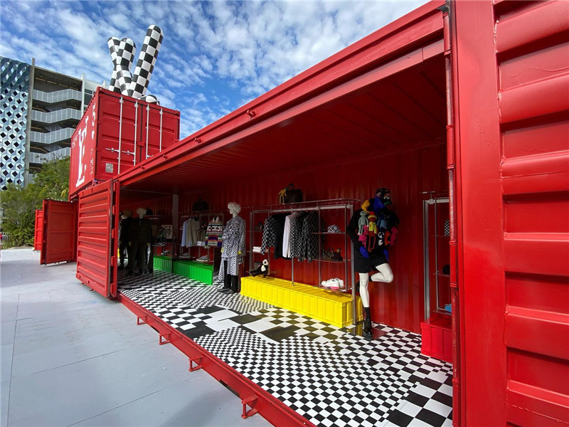 該項目包含了一個眼鏡造景和總共20個集裝箱展廳,所有的容器均具有定制的鋼結構,帶有框架,絕緣,內部飾面,電氣和雙門上的交流電。展柜開口所使用的類型是20'和40'的敞開側,以及20'的雙門集裝箱。