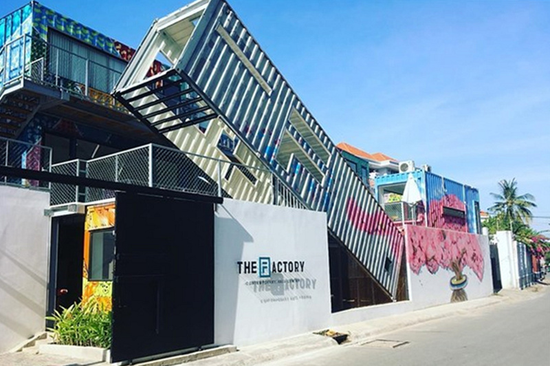 THE FACTORY 現(xiàn)代藝術(shù)中心,位于越南西貢。THE FACTORY 現(xiàn)代藝術(shù)中心,意在打造更貼合當(dāng)?shù)厍嗄甑漠?dāng)代藝術(shù)空間,并發(fā)更多創(chuàng)意和藝術(shù)活力,活化整個城市街區(qū)。中心的門口處是海運(yùn)集裝箱打造的通道樓梯,體墻面有THE FACTORY 現(xiàn)代藝術(shù)中心的醒目logo鏤空窗,令人印象深刻。