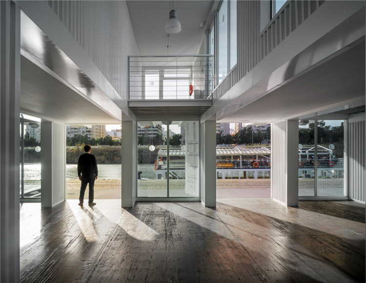 港口和城市都具備著不斷變化的共同特征,為了解決兩者之間互動(dòng)所帶來(lái)的挑戰(zhàn),碼頭建筑必須具備能夠隨著時(shí)間變換而做出改變的能力,其中一種解決方案就是采用模塊化的工業(yè)建筑設(shè)計(jì)。它既能強(qiáng)調(diào)港口與眾不同的本質(zhì),又能確保兩者建筑設(shè)計(jì)的城市一體化。為此,塞維利亞港口新建設(shè)了一個(gè)新的郵輪碼頭,它是靈活、多功能、可擴(kuò)展、能輕易移動(dòng)、甚至是能夠運(yùn)輸?shù)?。?xiàng)目占地面積為1096 m2,并能通過(guò)不斷調(diào)整模塊的數(shù)量來(lái)適應(yīng)隨時(shí)間增長(zhǎng)的乘客量及碼頭空間的未來(lái)前景。該模塊化碼頭建筑坐落在穿過(guò)塞維利亞的瓜達(dá)爾基維爾河沿岸,以高質(zhì)量的建筑項(xiàng)目促進(jìn)港口與其周邊城市的融合。