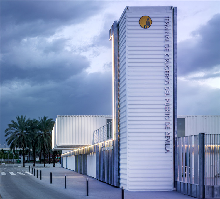 該郵輪碼頭法案是由塞維利亞港口管理局提出的, 并由建筑商設(shè)計(jì)完成,該項(xiàng)目利用了可回收集裝箱的建構(gòu)潛力,通過(guò)可持續(xù)模塊化單元達(dá)成可變換的目標(biāo),并通過(guò)不斷調(diào)整適應(yīng)當(dāng)?shù)氐牡刂泻夂颉?