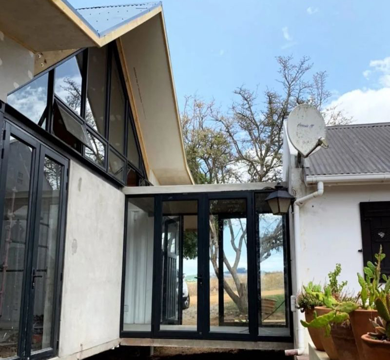 在建造集裝箱新建筑的時候,該房屋最重要特征是其屋頂,這是一個與舊建筑一樣的三角屋頂。因此,當我們看房子時,屋頂比集裝箱吸引了更多的注意力。該集裝箱建筑采用了大面積的玻璃窗設計,以至于房子的前部幾乎是透明的,為室內(nèi)帶來了充足的自然光線和風景。