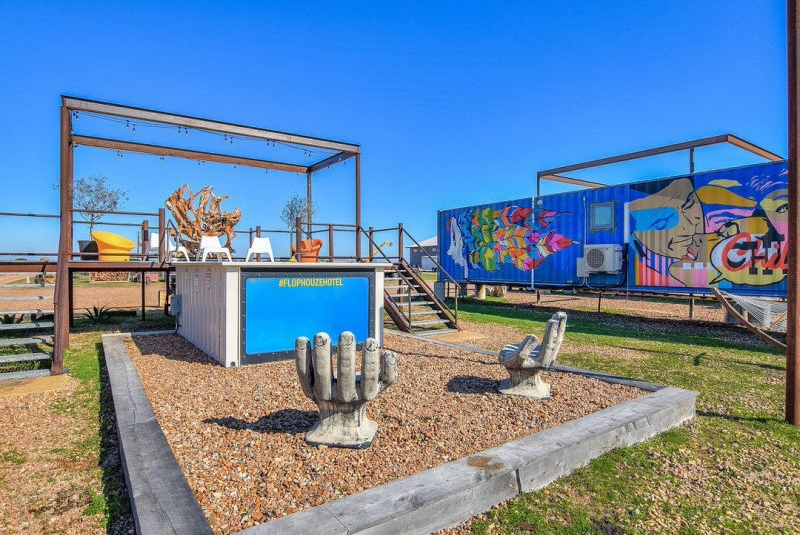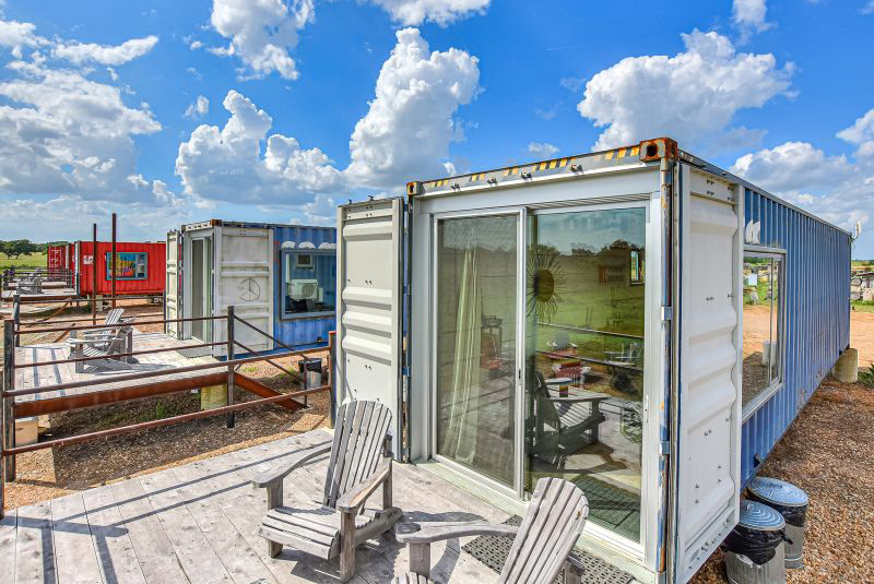 一個(gè)集裝箱模塊就是一個(gè)單獨(dú)的住房,外部由金屬壁板材料和屋頂材料構(gòu)成,擁有平屋頂線,是一座集裝箱建筑類(lèi)型的現(xiàn)代住宅。所有模塊的底部都經(jīng)過(guò)了墊高處理,以減少濕潤(rùn)土地對(duì)箱身的加速腐蝕。有的集裝箱壁上還擁有整片的涂鴉,鮮艷的色彩營(yíng)造了活躍的藝術(shù)氛圍。