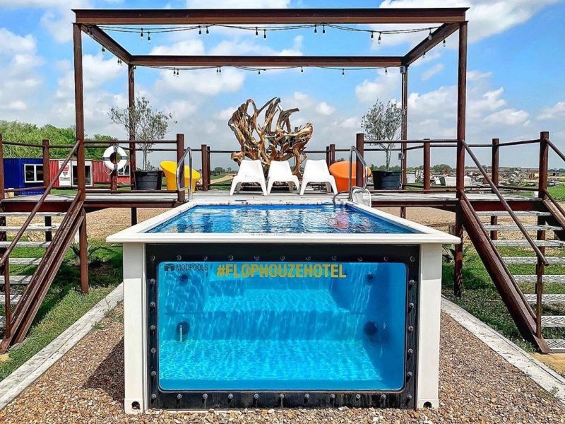 該項(xiàng)目所有的生態(tài)時(shí)尚內(nèi)飾覆蓋都來(lái)自當(dāng)?shù)氐幕厥漳静?。為了捕捉廣闊的田園風(fēng)光和自然采光,酒店的窗戶(hù)均來(lái)自一些待拆建筑的窗戶(hù),體現(xiàn)了循環(huán)利用的回收理念。酒店的中部擁有一個(gè)公共戶(hù)外休閑區(qū),帶有遮陽(yáng)棚的露臺(tái),以及一個(gè)集裝箱改造而成的泳池。