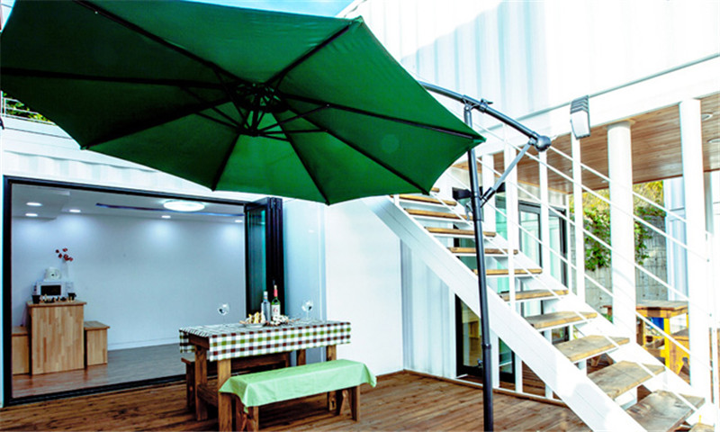 并排形式使得視野開闊無遮擋,每座集裝箱度假小屋均能享受到無敵山景。兩層式簡約小屋,全白外墻色調(diào),門窗全采用落地反光玻璃,干凈利落。門前有躍級小平臺,并朝向著中部泳池。