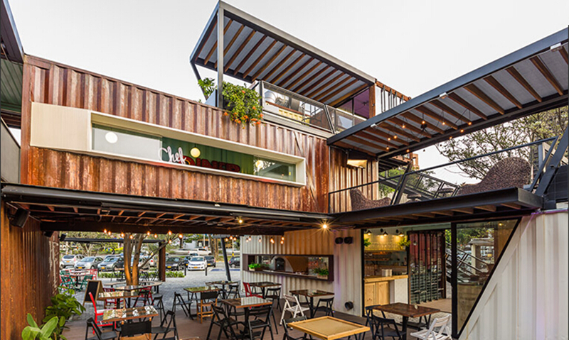 銹跡斑斑,想必會給人一種殘舊的感覺。然而,當銹跡成為一種設計創(chuàng)作元素,畫面的畫風就完全不一樣了!局部保留集裝箱的紅褐色銹跡墻面,其余部分經(jīng)過改裝、重新噴漆、裝修,新舊感覺的沖撞,年月時代的見證,整個感覺都變因此而變得質(zhì)感豐厚、非同凡響。