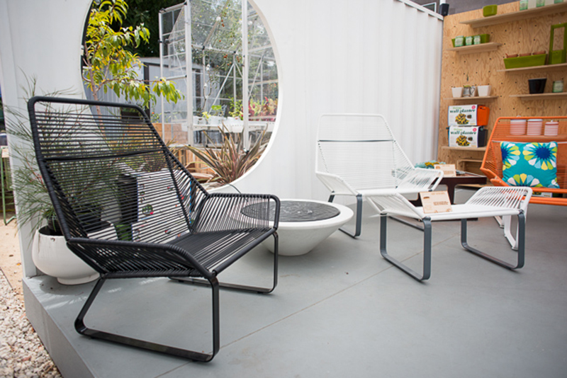 該商業(yè)空間設(shè)計(jì)靈感源于夏威夷和哥斯達(dá)尼加,那里也是多雨悶熱的氣候,所以不能將空間封閉起來。下圖的躺椅和沙發(fā)椅為Ilan Dei Venice’s Cord系列,中間的小火坑也是Ilan Dei的出品。