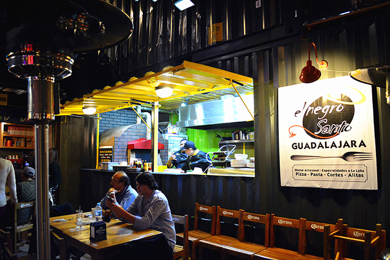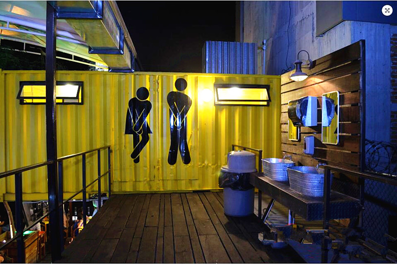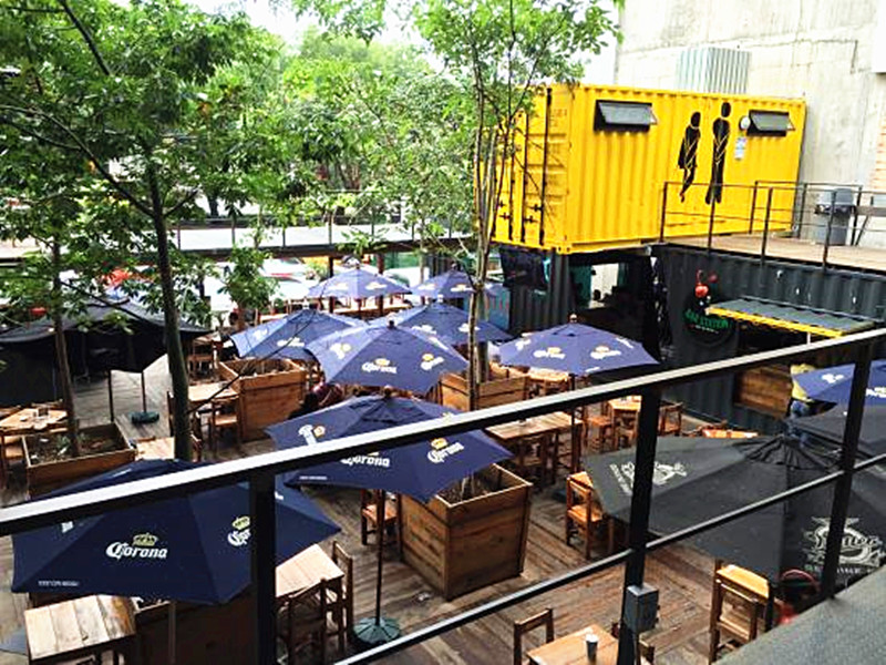 集裝箱體經(jīng)過改造,側(cè)板改裝成遮陽板作為餐廳入口或窗口,內(nèi)部根據(jù)各店面需要加以內(nèi)部裝修,箱體表面加上各類裝飾涂鴉,充滿街頭風情,親和感十足。
