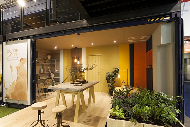 裝潢裝飾展Levis以集裝箱展廳的形式進(jìn)行參展,當(dāng)?shù)氐囊患抑耐苛瞎?,?zhuān)注于提供時(shí)尚的色彩搭配方案、門(mén)窗涂裝系統(tǒng)、持久的散熱器防銹保護(hù)等。