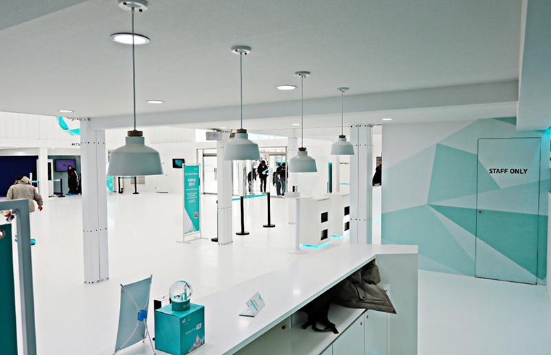 進(jìn)入之后恍若一個大型的室內(nèi)廣場,一個舞臺設(shè)置在廣場的正前方,舞臺上是一面巨大的電子屏,在平昌奧運(yùn)會期間實現(xiàn)了直播現(xiàn)場,為市民帶來了很大的便利。