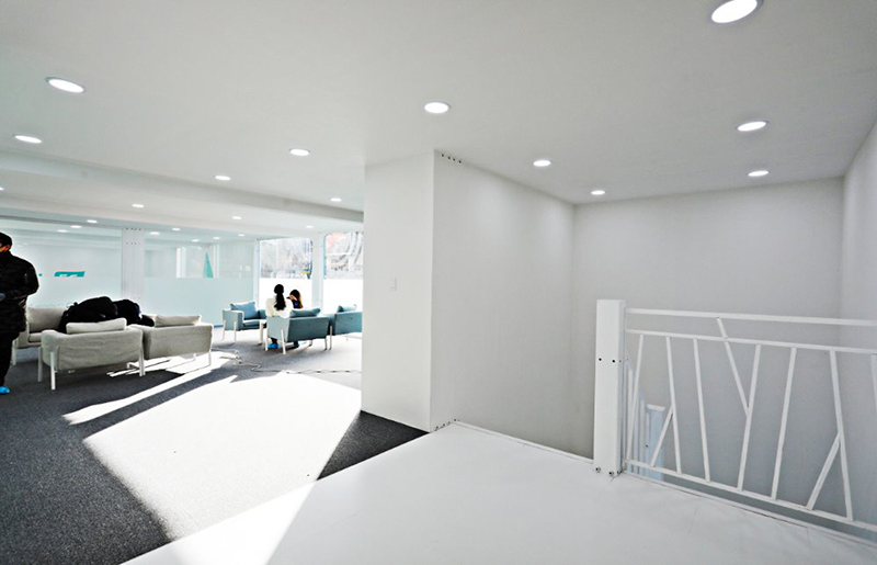 從右邊的螺旋樓梯上樓便是直播站的二層,這樣的樓梯設(shè)計更能節(jié)省空間的使用。