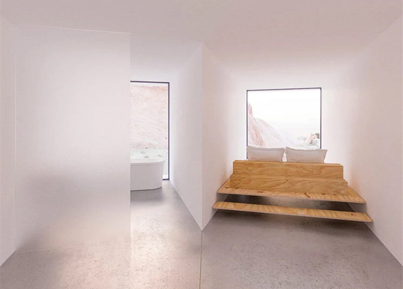 在許多窗口的位置,還設(shè)有上圖這樣的休閑卡座,從這里向外望去,可以看到約書亞樹國家公園的美景,確實是凝神靜心的好地方。
