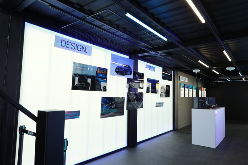 和許多極具科技感的展廳一樣,這座寶馬的展廳也是用了全黑的建筑背景,將室內(nèi)的燈光效果和車身突顯出來。因此,會(huì)發(fā)現(xiàn)現(xiàn)場(chǎng)的燈都是以線條。