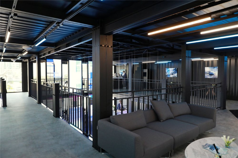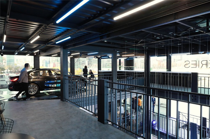 一共三層的室內(nèi)空間每層的功能都不一樣底下一層主要以展示最新,主打車型為主,第二層則是休閑茶點(diǎn)區(qū),第三層是景色最美的觀景區(qū)。樓層之間通過室內(nèi)的鐵梯進(jìn)行連接。